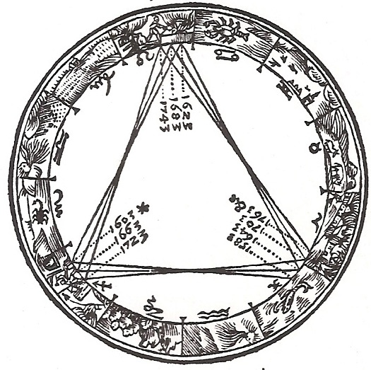 These 'trines' or triads of great conjunctions held great sway over Kepler's thinking, leading him to suggest that the Star of Bethlehem was related to a close pairing of Jupiter and Saturn in 7 B.C. in Pisces the Fishes, a sign long associated with Judaism.