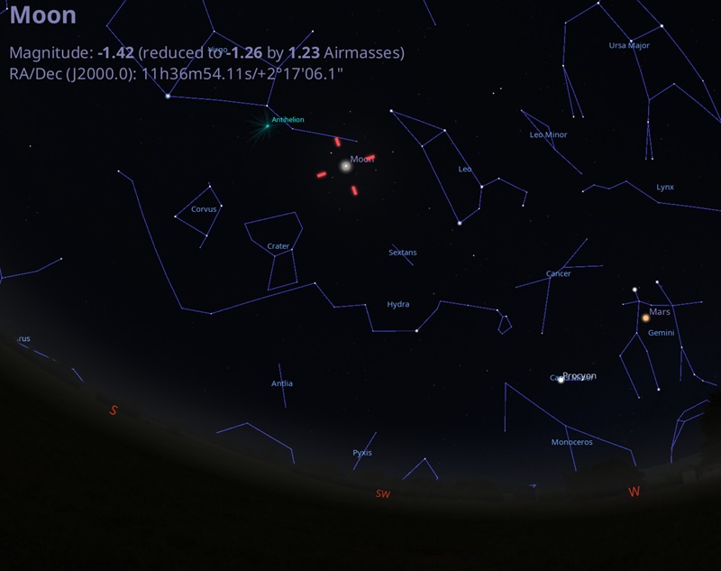 The sky circumstances at mid-eclipse. Credit: Stellarium.