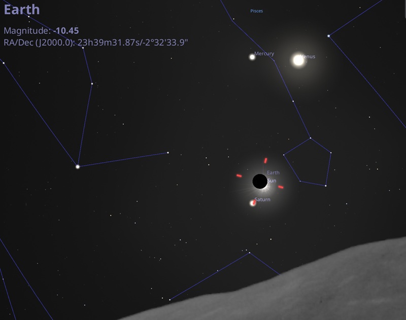 Friday's totality as seen from the Moon and Blue Ghost's landing site. Credit: Stellarium.
