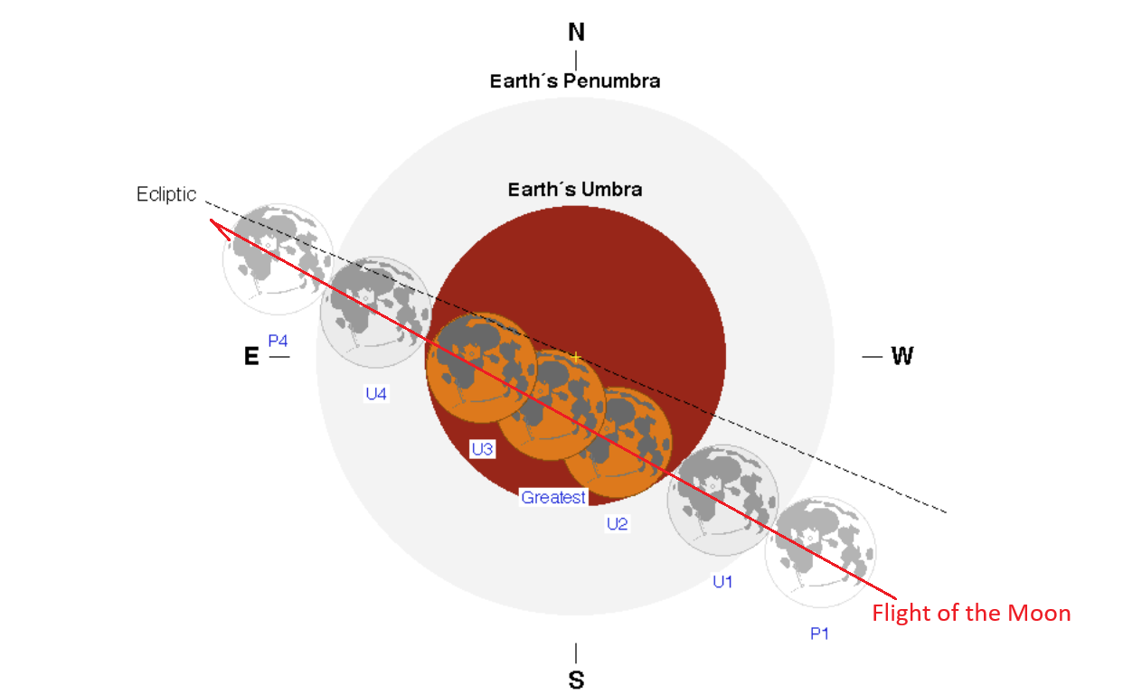 The Sunday path of the Moon through the Earth's shadow. Adapted from NASA/GSFC.