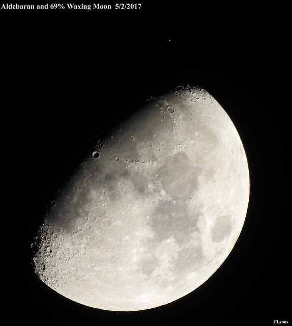 The Moon nearing Aldebaran on February 5th, 2017. Image credit and copyright:
