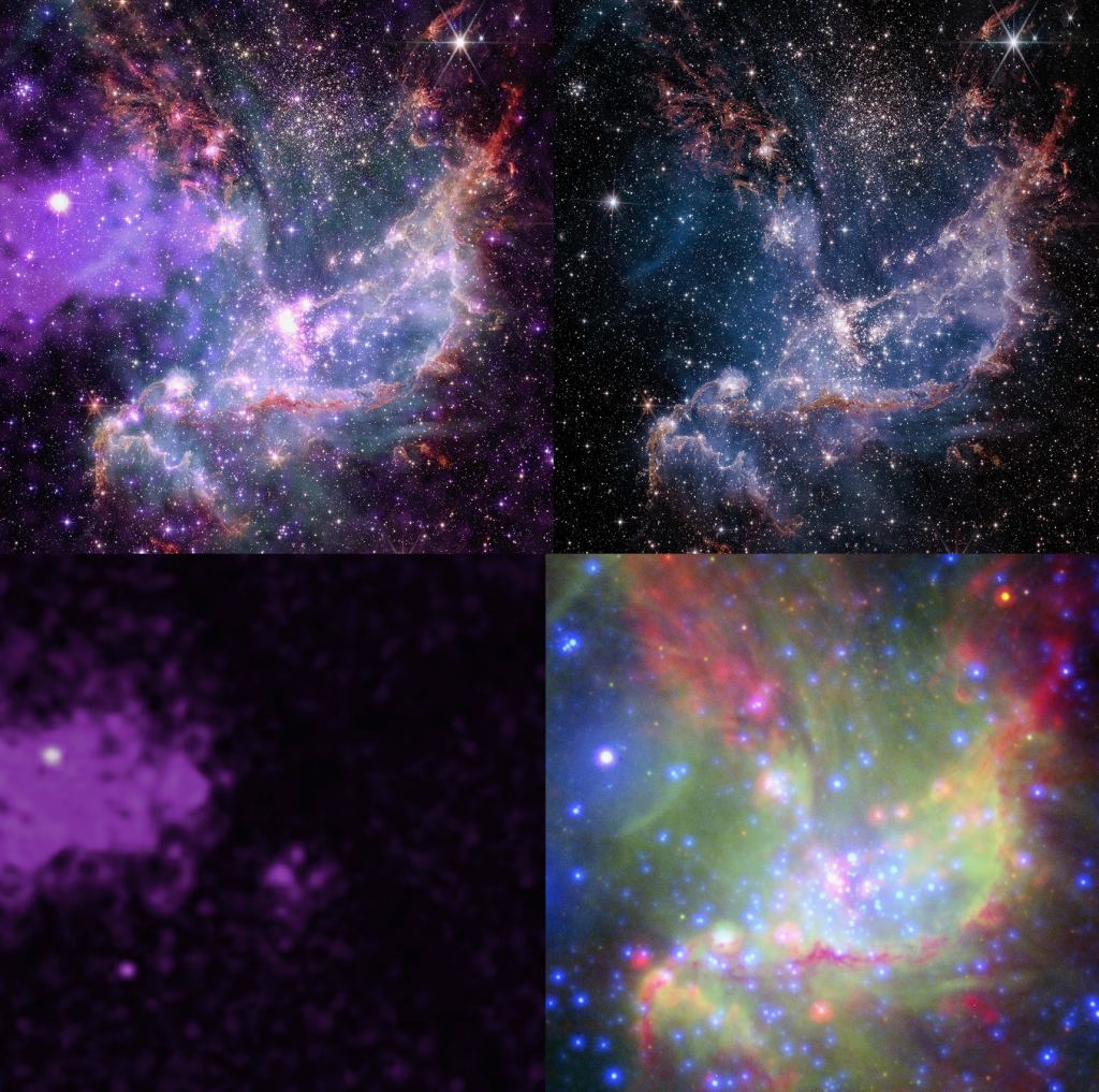 These images are another reminder of the capabilities of the JWST, the most powerful and complex observatory ever sent to space. They also showcase the benefit of combining data from different observatories optimized to study the cosmos in different wavelengths. They're also symbolic in a way. For decades, NASA's "Great Observatories" combined data to reveal more about the Universe. Combining Webb's advanced infrared imaging with data provided by these veteran observatories is like a "passing of the torch."