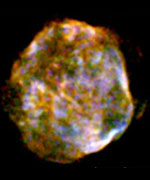 Image credit: Chandra The Chandra image of N49B, left, the remains of an exploded star, shows a cloud of multimillion-degree gas that has been expanding for about 10,000 years. A specially processed version of this image, right, reveals unexpectedly large concentrations of the element magnesium, shown in blue.