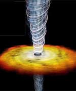 "This jet is especially significant because it allows us to probe the cosmic background radiation 1.4 billion years after the Big Bang," said Aneta Siemiginowska of the Harvard-Smithsonian Center for Astrophysics in Cambridge, Mass., lead author of a report on this research in the November 20th Astrophysical Journal Letters. Prior to this discovery, the most distant confirmed X-ray jet corresponded to a time about 3 billion years after the Big Bang.