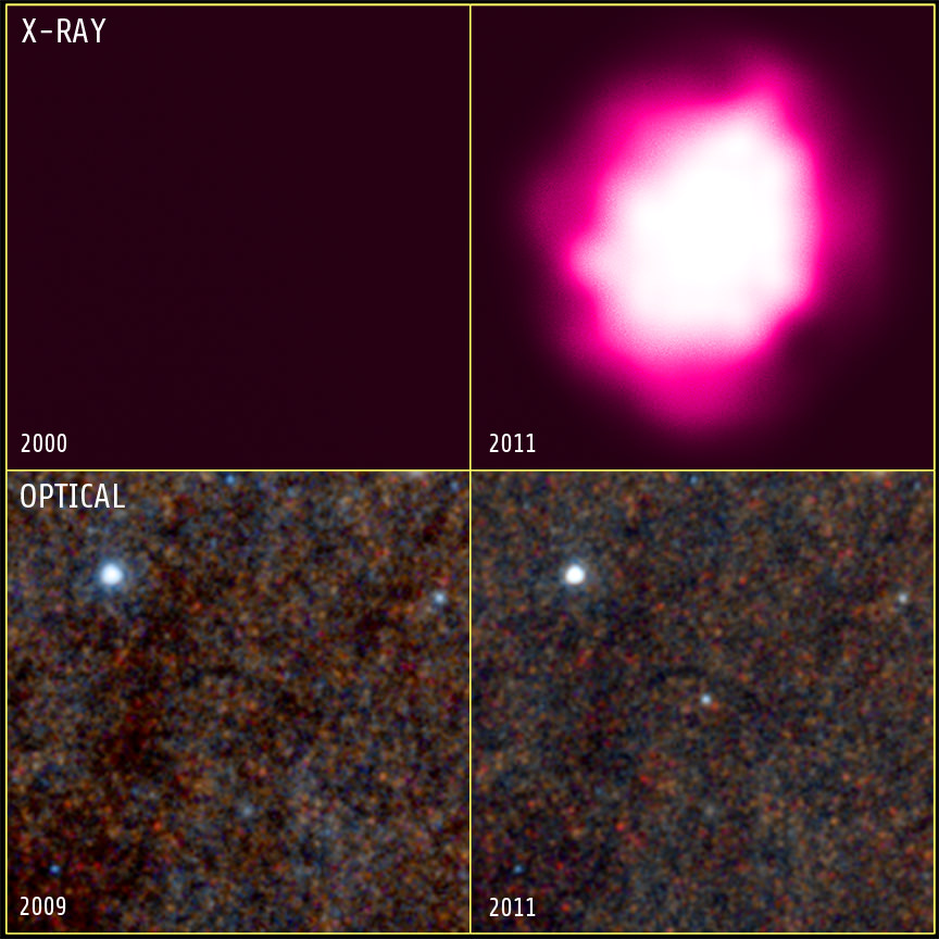 The observations of M83 were made over a several year period with Chandra. No sign of the ULX was found in historical X-ray images made with Einstein Observatory in 1980, ROSAT in 1994, the European Space Agency's XMM-Newton in 2003 and 2008, NASA's Swift observatory in 2005, the Magellan Telescope observations in April 2009 or in a Hubble image obtained in August 2009.