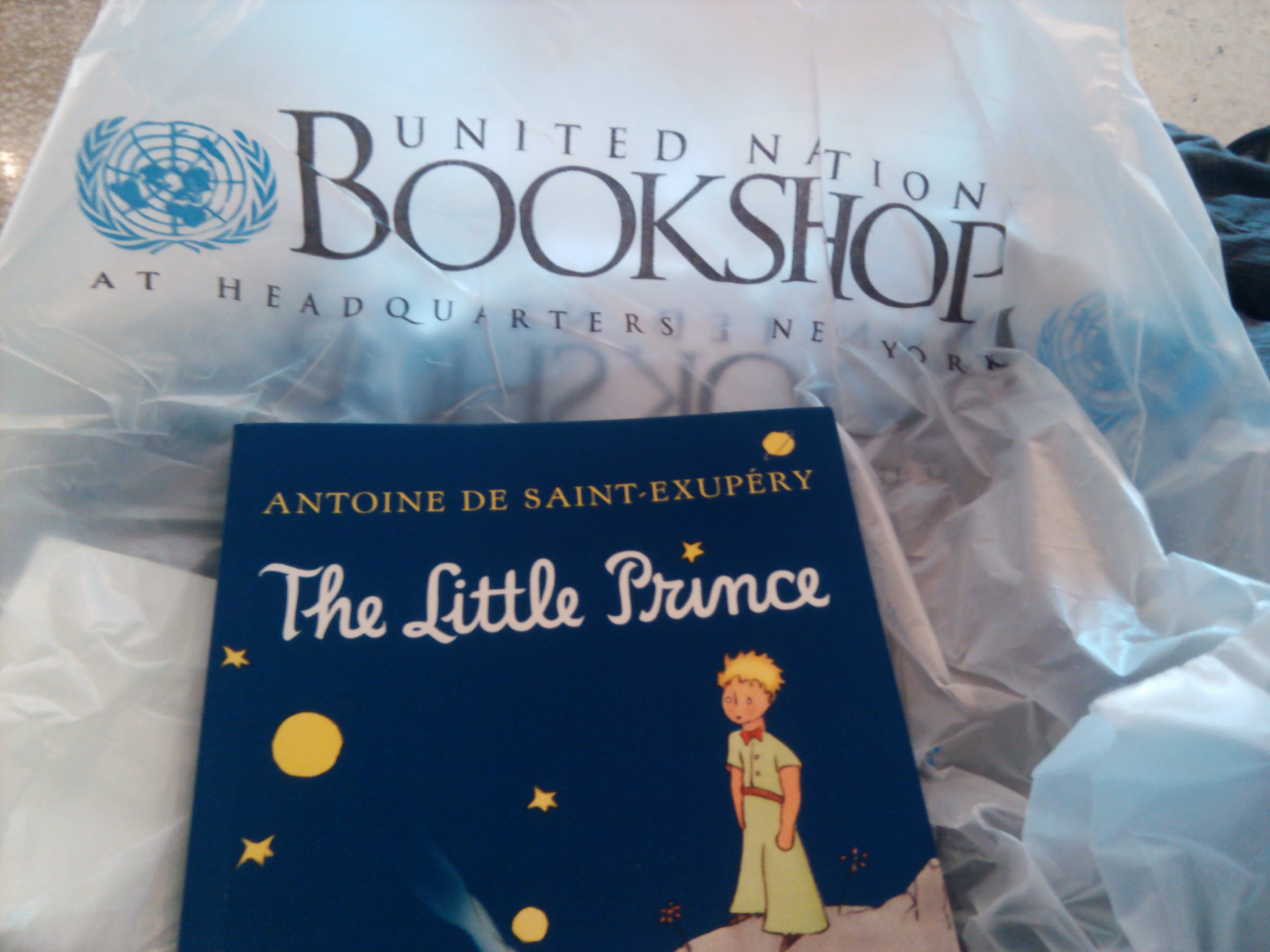 I didn't expect to find a story about a stranded aviator and a cosmos-travelling boy in the United Nations bookstore in New York City.