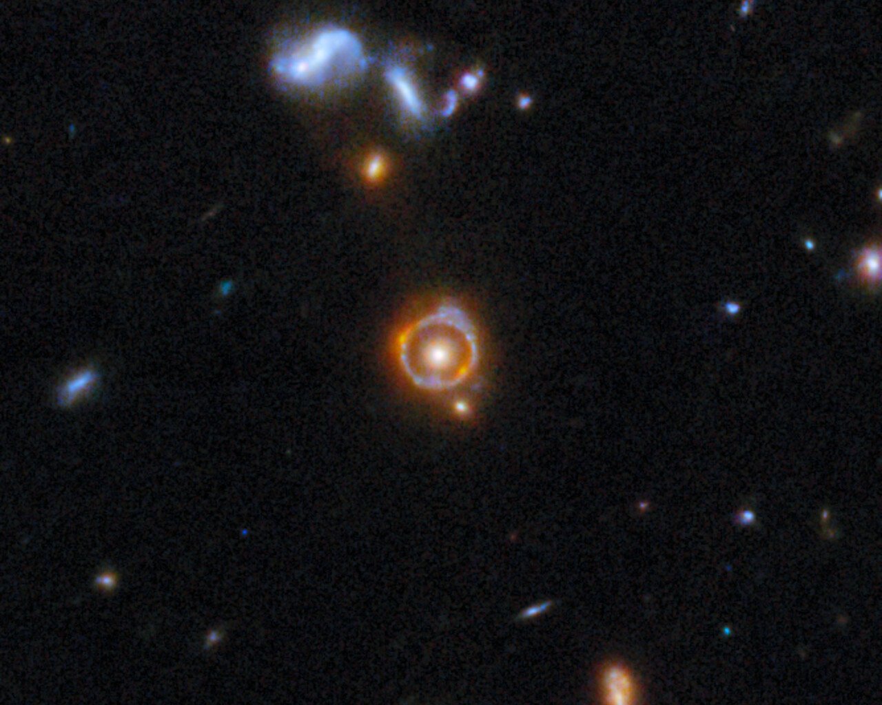 Another candidate, just to the right of the COSMOS-Web Ring, is also an example of an Einstein Ring, but appears smaller and less discernible. This lensing system (COSJ100018+022138) was previously confirmed by the venerable Hubble Space Telescope, but revealed in greater detail by Webb. While the elliptical lensing galaxy in the foreground appears as it did roughly 4 billion years after the Big Bang, the blue lensed galaxy existed when the Universe was less than 2 billion years old.