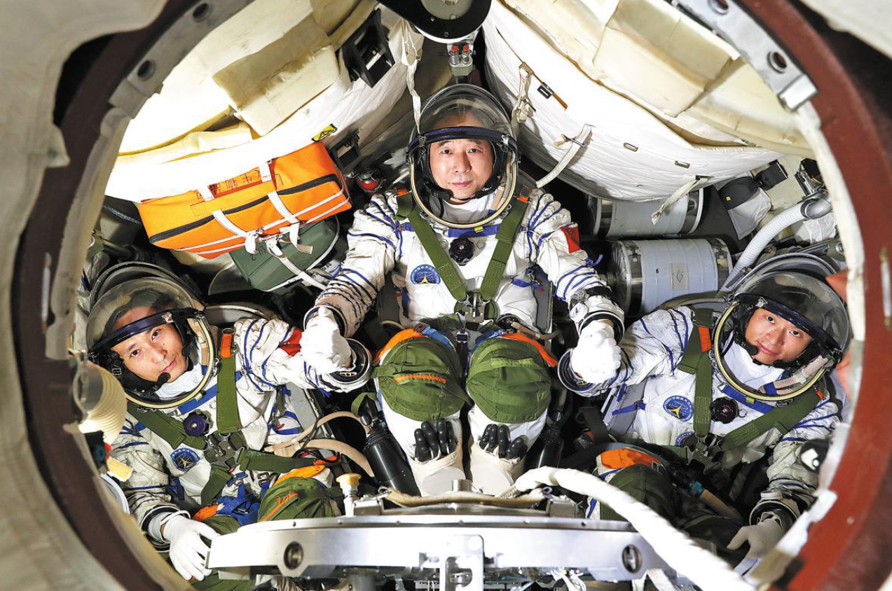 Taikonauts aboard the Shenzhou module. credit: CNSA.