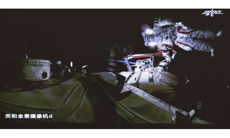 AP - Chinese astronauts make first spacewalk outside new station