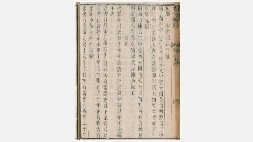 Specifically, the Annals refer to a "five-coloured light" in the northern sky, around the time of the Zhou Dynasty. Using the accurate chronology of ancient Chinese dynasties allowed researchers to refine the date for the observations down to between 977 to 957 BCE—a span of only two decades. This would place the aurora observation and account three centuries earlier than any previous known observation.