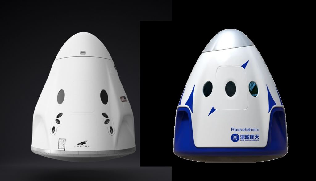 The infographic also previews what the launch vehicle and spacecraft will look like, which have some notable similarities to SpaceX and Blue Origin vehicles. For instance, the crew capsule strongly resembles the SpaceX's Crew Dragon* vehicle, which includes the launch abort system consistsing of eight thrusters distributed into four clusters. However, the Dragon* space capsule has only two viewports, whereas the Nebula-1 reportedly has five (though eight can be seen in the infographic), which is more akin to Blue Origin's New Shepard space capsule, which has six large viewports.