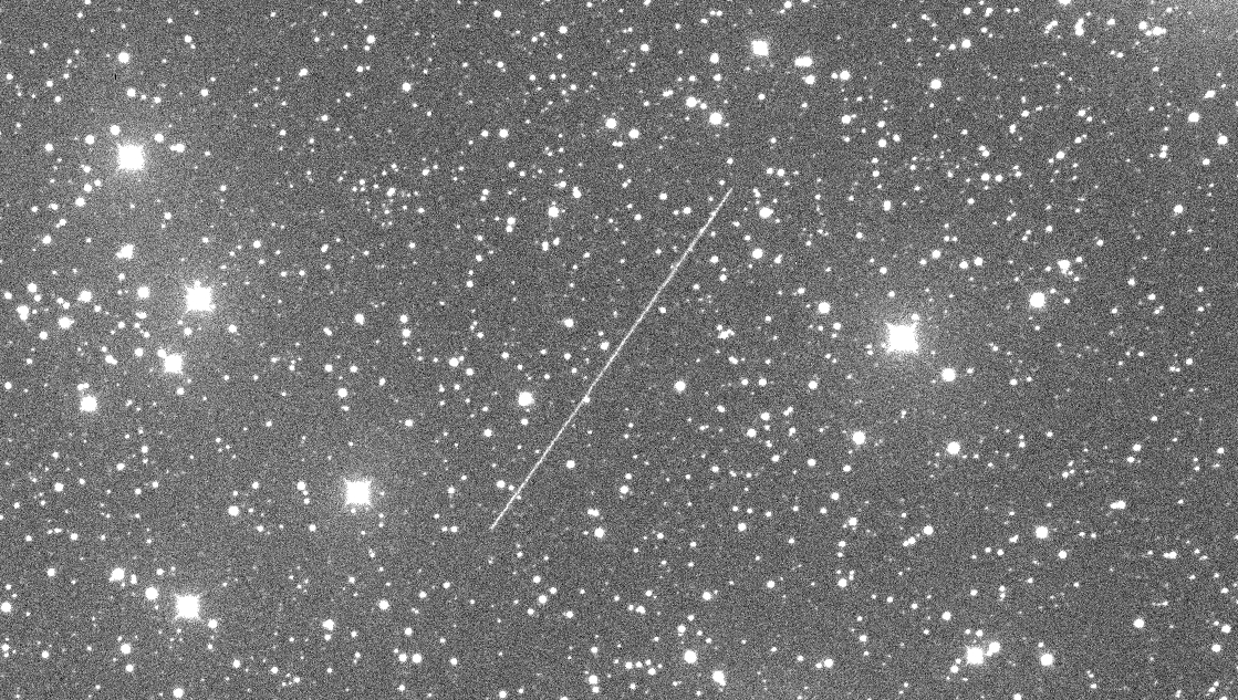 "In two images taken at 01:30:16 and 01:31:18, 60sec exposure, 2012 XE54 appeared as a very faint and long track, then... nothing. In the following images there is no visible track. Wonderful!" wrote Elia Cozzi from the New Millennium Observatory, posting in the