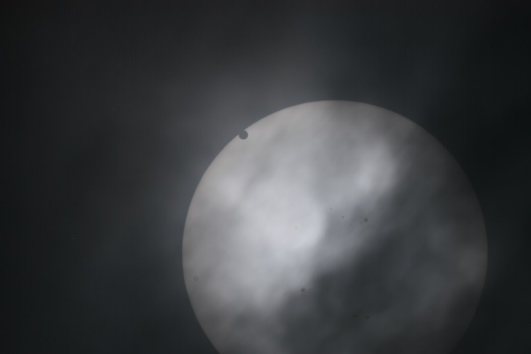 For the next two and a half hours until sunset at around 8:30 p.m. EDT, we enjoyed spectacular glimpses as Venus slowly and methodically moved across the northern face of the sun as the racing clouds came and went on numerous occasions, delighting everyone up to the very end when Venus was a bit more than a third of the way through the solar transit.