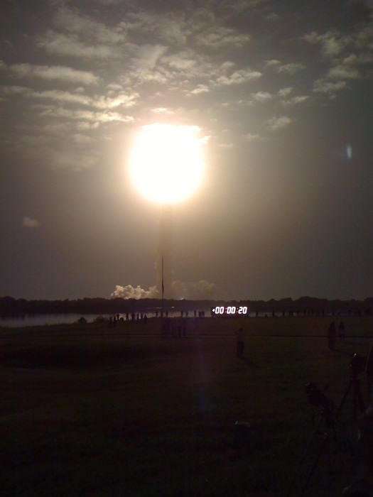 on Twitter. Click the image for more of her images. Several comments from Twitterers attending the launch said night was turned into day as the shuttle ascended!