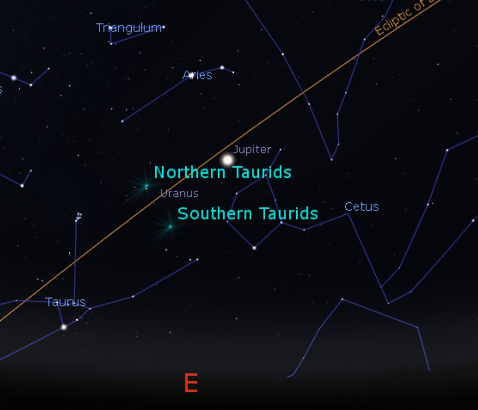 The November Taurids produce two streams, both hailing from the constellation of Taurus the Bull. The showers are active over a broad period from late October to mid-November. The twin peaks occur on November 12th (Northern Taurids) and November 5th (Southern Taurids) respectively. Both showers produce low rates of just five meteors per hour, hardly above the background sporadic rate. The notoriety for the pair stems from the high rate of fireballs they produce. Almost every year, we see fireball reports online pick up in late October.