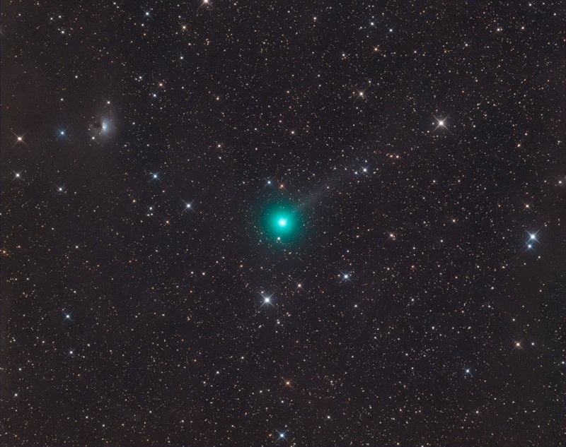 Observing comets brighter than +10thmagnitude is as simple as sweeping the suspect field with binoculars and looking for a fuzzy 'star' that stubbornly refuses to snap into focus. Like globulars and other deep sky objects, comets can often appear visually fainter than the quoted magnitude, owing to the fact that all that brightness is 'smeared out' over an apparent surface area. Missions to comets such as the European Space Agency's Rosetta mission to comet 67P/Churyumov-Gerasimenko demonstrated just how dark these objects are up close. Likewise, imaging comets is similar to photographing deep-sky objects, requiring stacking of multiple exposures. Be sure to track the comet against the starry background whilst exposing frames, as a fast-mover such as F3 NEOWISE can move noticeably even after only an hours' worth of observation.