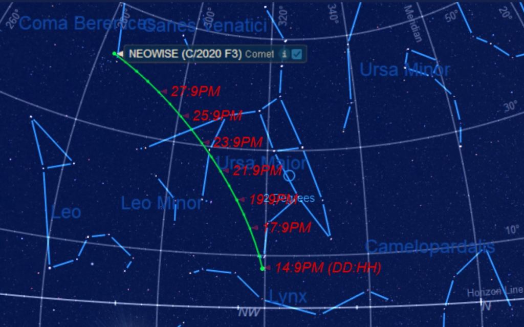 One can hope this one puts on a decent show. Here's the month-by-month breakdown of celestial dates with destiny for comet F3 NEOWISE. As always, passes near notable celestial objects are less than one degree, unless otherwise noted: