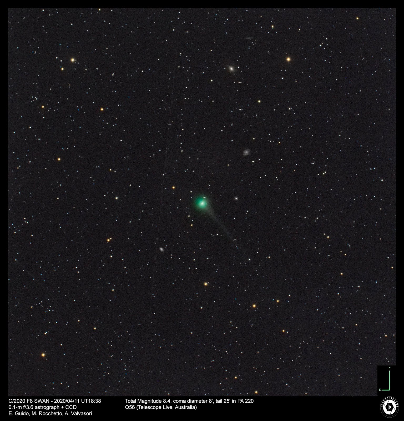 Lead image: Newly discovered Comet C/2020 F8 SWAN, imaged using the remote Q56 Telescope Live in Australia. Image credit: E. Guido, M. Rocchetto, and A. Valvasori.