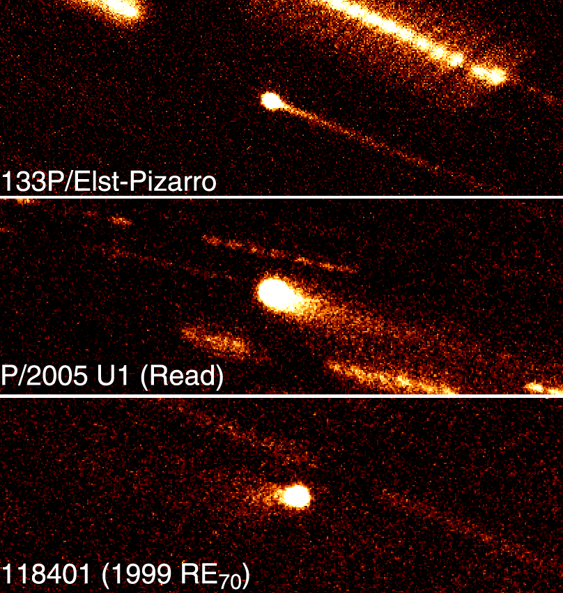 Asteroids are rocky bodies which belong between Mars and Jupiter. Comets are icy bodies that belong way out beyond Pluto. So what are comet-like objects doing in the asteroid belt?On the night of August 7, 1996, astronomers Eric Elst and Guido Pizarro were observing what was previously thought to be an ordinary asteroid. To their surprise, the object revealed a faint but distinct tail similar to that of a comet. Initially, this was written off as a minor impact kicking up a debris cloud, but when the tail returned in 2002, when the supposed asteroid again returned to perihelion (the closest approach to the Sun), it once again displayed a tenuous tail. The “asteroid” was then given the designation of 133P/Elst-Pizarro. In 2005, two new asteroids were discovered to sport tails: P/2005 U1 and 118401. In 2008, yet another one of these odd objects was found (P/2008 R1). This new class of objects has been dubbed "Main Belt Comets (MBCs)".So where are these objects coming from?A previous article here on Universe Today explored the possibility that these objects formed like other asteroids in the main belt. After all, each of the objects has an orbit consistent with other apparently normal asteroids. They have a similar distance at with they orbit the Sun, as well as similar eccentricities and inclinations of their orbit. So trying to explain these objects as having origins in the outer solar system that migrated just right into the asteroid belt seemed like little more than special pleading.Furthermore, a 2008 study by Schorghofer at the University of Hawaii predicted that, if such an icy body were to form, it would be able to avoid sublimation for several billion years if only it were covered with a few meters of dust and dirt thus negating the problems of these objects suffering an early death. (Keep in mind that, much like a melting snowball, the water will evaporate but the dirt won't, so the dirt will pile up quickly on the surface making this entirely plausible!) However, if the ice were covered by such an amount of dust, it would take a collision to remove the dust and trigger the cometary appearance.In a recent paper, Nader Haghighipour also at the University of Hawaii explores the viability of collisions to trigger this activation as well as the stability of the orbits of these objects to assess the expectation that they were formed at the same time as other asteroids in the main belt.For the orbital range in which three of the MBCs lie, it was predicted that "on average, one m[eter]-sized object collides ... every 40,000 years." They stress this is an upper limit since their simulation did not include other, nearby asteroids which would likely deplete the number of available impactors.When they explored the orbital stability of these objects, the discovered at least two of them were dynamically unstable and would eventually be ejected from their orbits on a timescale of 20 million years. As such, it would be unreasonable to expect such objects to have lasted for the nearly 5 billion year history of the solar system. Thus, an in-situ formation was ruled out. However, due to a similarity in orbital characteristics to a family of asteroids known as the Themis family, suggesting they may have resulted from the same break up of a larger body that created this group. This begs the question of whether or not more of these asteroids are secretly hiding water ice reservoirs and are just waiting for an impact to expose them.Distinctly separate from this orbital family was P/2008 R1 which exists in an especially unstable orbit near one of the resonances from Jupiter. This suggests that this MBC was likely scattered to its present location, but from where remains to be determined.So while such Main Belt Comets may not have formed simply as they are now, they are likely to be in orbits not far removed from their original formation. Also, this work supported the earlier notion that minor impacts could reliably expected to expose ice allowing for the cometary tails. Whether or not more asteroids have tails tucked between their legs will be the target of future exploration.Haghighipour's Paper