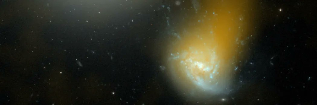 Featured Image: a 'jellyfish galaxy' having material stripped away from it by the dense medium surrounding it. Credit: Ian Roberts