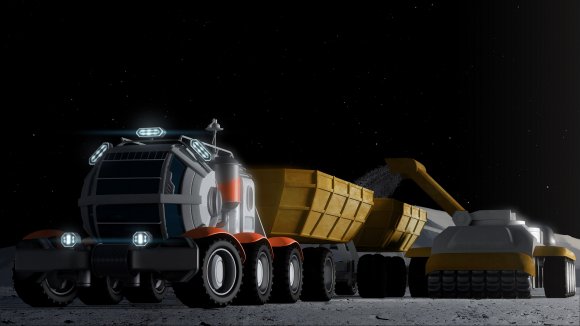 A huge lunar miner, with astronaut for scale. Credit: Sergio Botero[/caption]