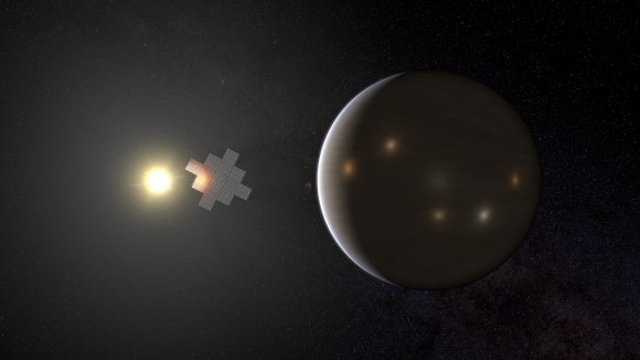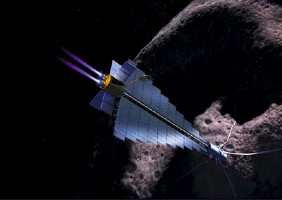 Concept for a possible gravity tractor. Credit: JPL[/caption]