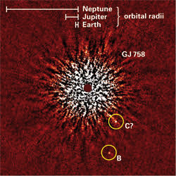 The planet was imaged using the Subaru Telescope's new High Contrast Instrument for the Subaru next generation Adaptive Optics (HiCIAO) instrument, which utilizes the technology of adaptive optics to eliminate the interference of our atmosphere that blurs images in ground-based telescopes. The imaging of GJ 758 B is part of the commissioning run of the HiCIAO instrument, which plans to take a larger survey to detect extrasolar planets and circumstellar disks in the next five years.