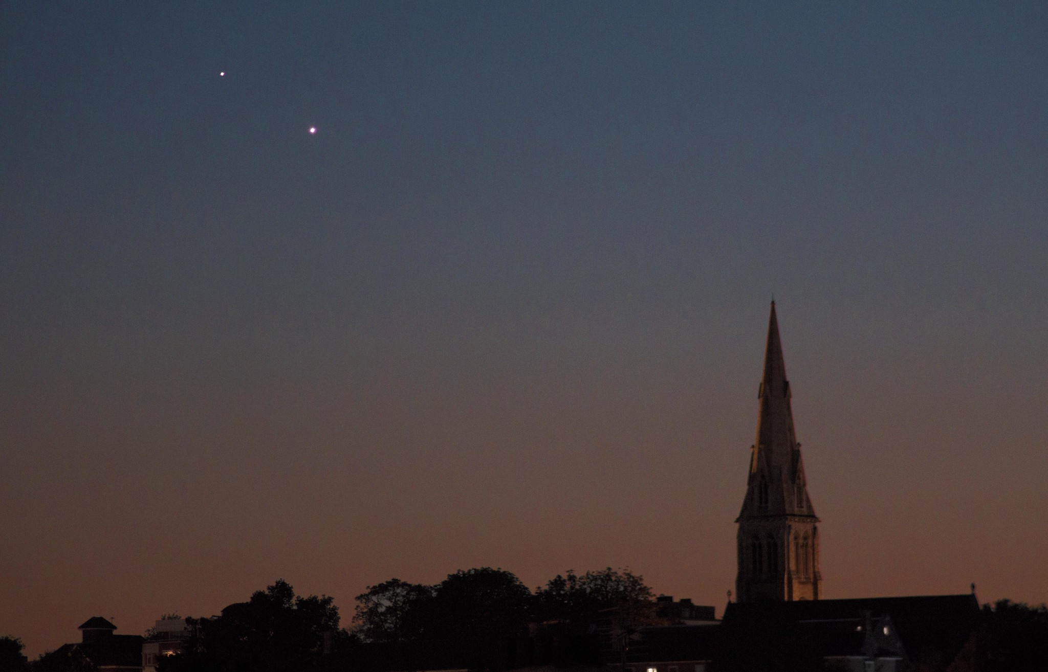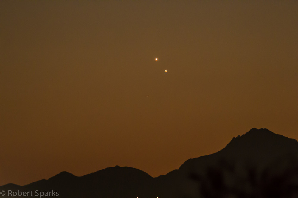 It has begun. Once every 12 to 18 months or so, I start fielding "what are those two bright objects in the sky?" questions. They're none other than the third and fourth brightest natural objects in the sky (behind the Sun and the Moon), the planets Jupiter and Venus. If skies are clear, you can see them get ever closer together from one night to the next, as they meet up during a spectacular conjunction on the night of March 1st/2nd.