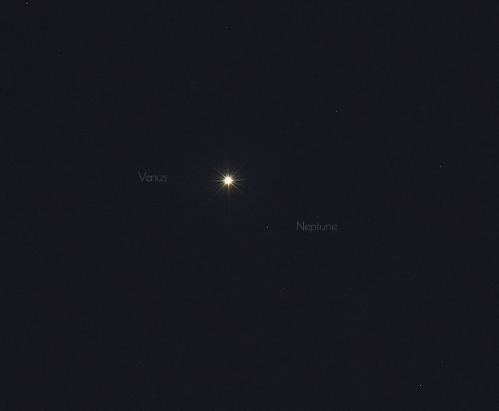 This leads up to the big event on Wednesday March 1st, as Jupiter passes just 29' (about one Full Moon diameter) from Venus at 5:00 Universal Time (UT) on March 2nd. The two will be close enough to easily fit in a low power field of view, though (mainly Venus) is really truckin', moving an apparent distance of one full degree from just one evening before and after. Though the conjunction is one of the best naked eye planet versus planet conjunctions for 2023, it isn't the closest overall; that award goes to last week's rare Venus-Neptune conjunction, when the two were just 42" apart.