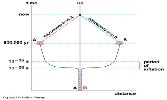 The horizon problem in Big Bang cosmology. How is it that distant parts of the universe possess such similar physical properties? Credit: Addison Wesley.[/caption]