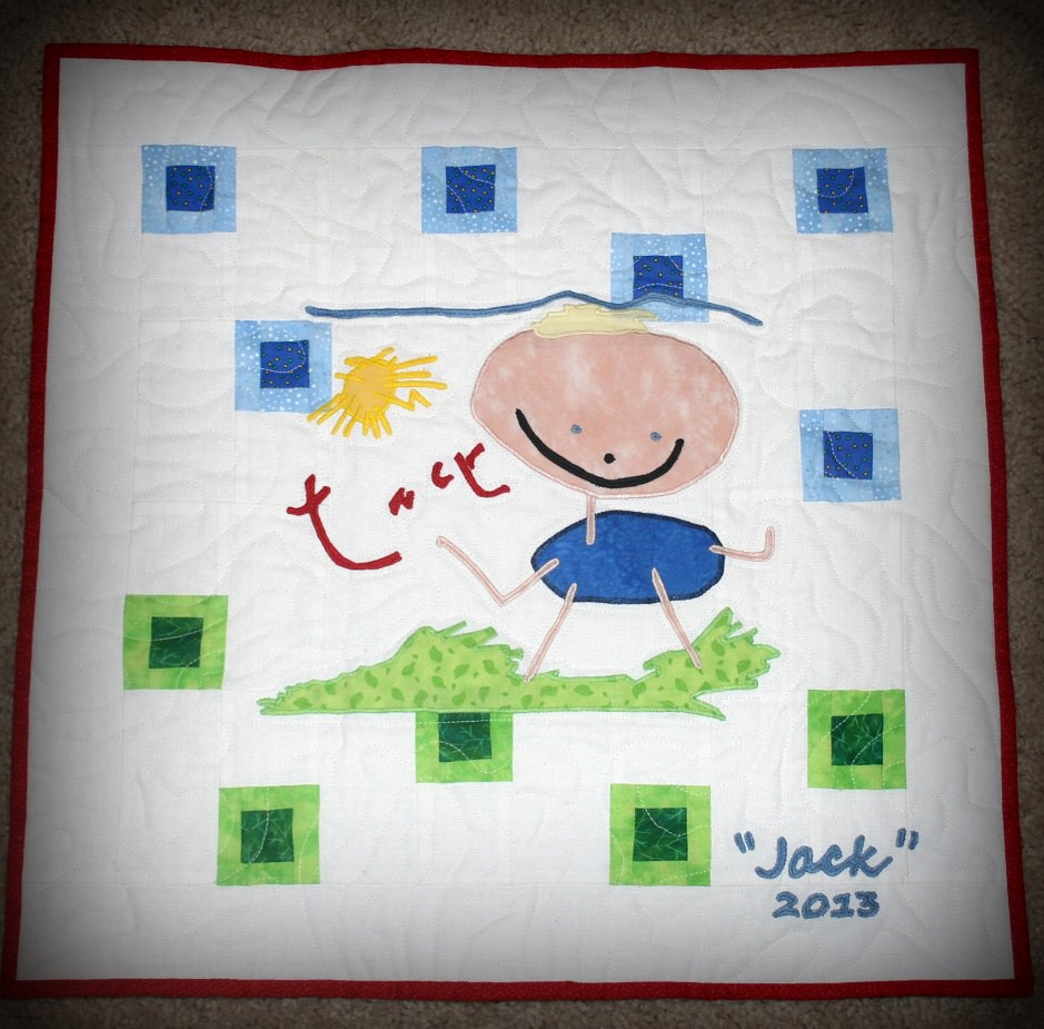 Kids' drawings are the best, as astronaut Karen Nyberg proudly shows in her latest mini-quilt piece. The astronaut -- who just spent six months in orbit during Expedition 36/37 -- is also a prolific quilter and drew inspiration from her son, three-year-old Jack, in this quilt posted on