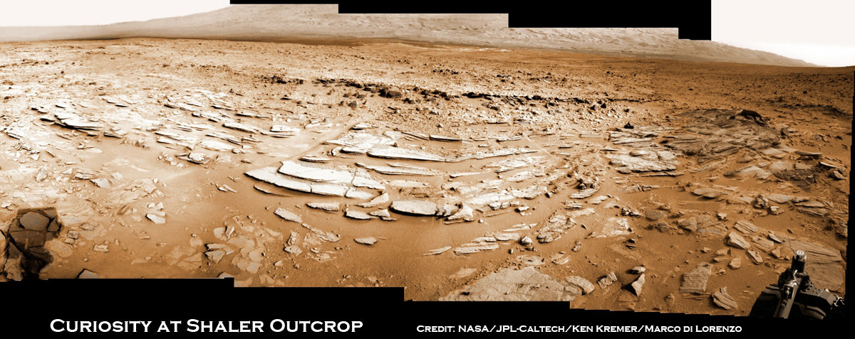 Along the way just days ago on Sol 120 (Dec 7, 2012) she stopped to inspect a huge outcrop of layered rocks dubbed 'Shaler' and snapped dozens of high resolution photos with the Navcam and Mastcam cameras.