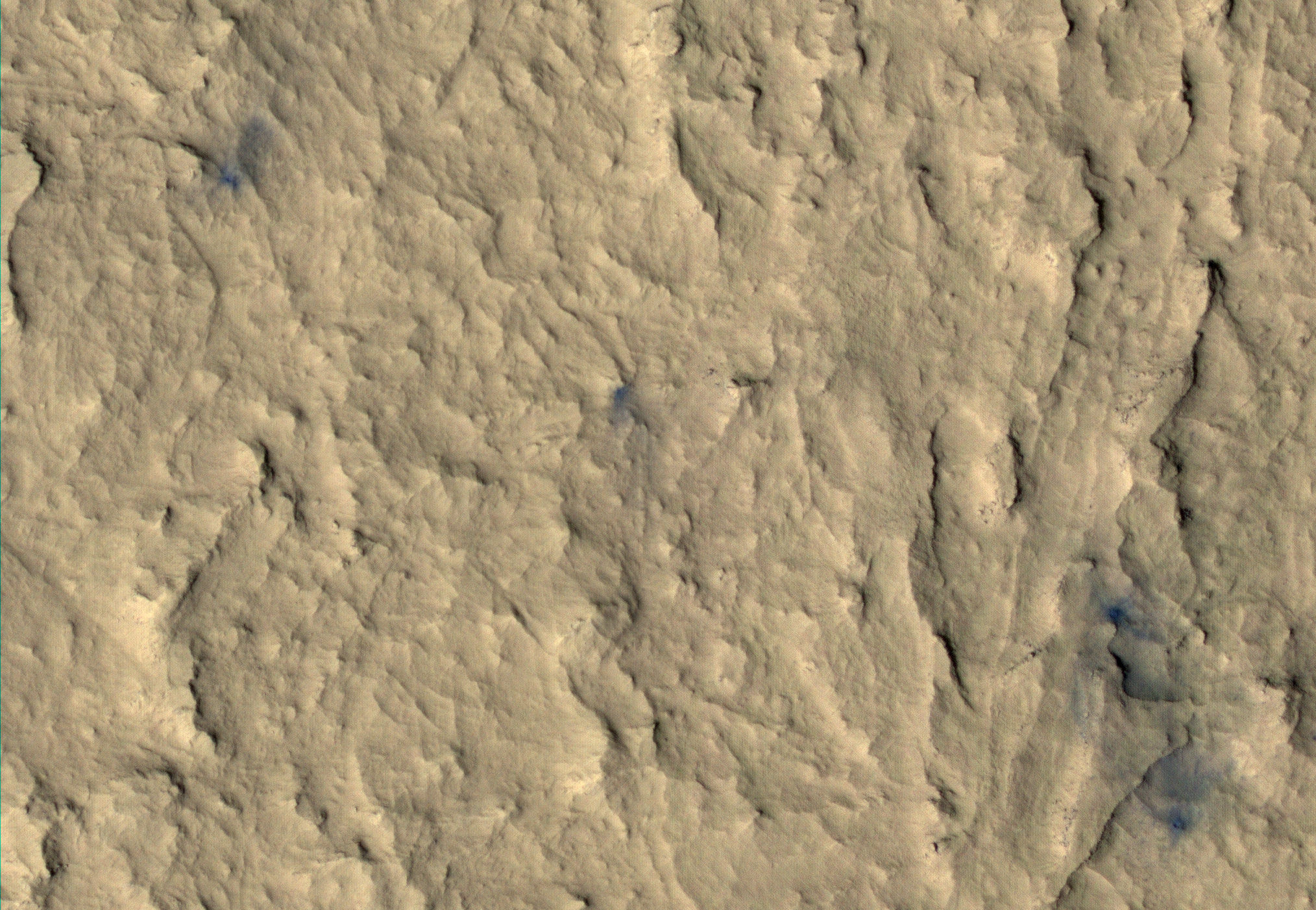Captured by MRO's Context Camera shortly after the rover landed, the animation above shows the impact site of all six 55 kg masses. These impacted the Martian surface about 12 km (7.5 miles) from the Curiosity rover's landing site.