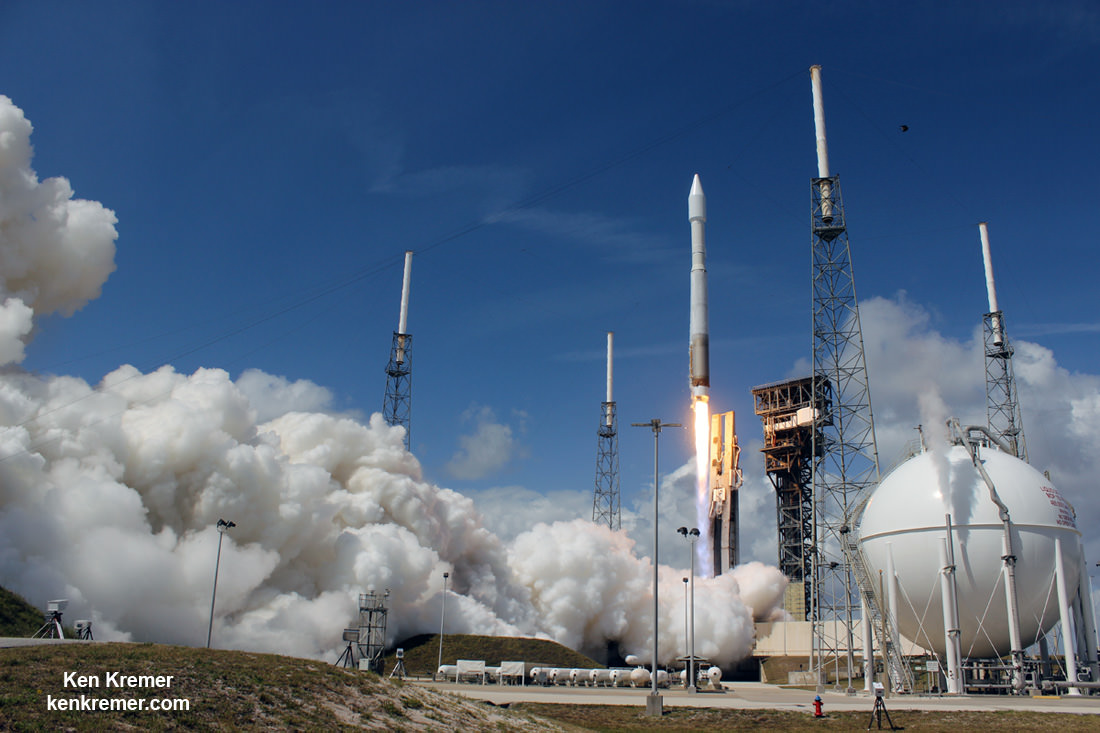 Orbital ATK's seventh cargo delivery flight to the International Space Station -in tribute to John Glenn- launched at 11:11 a.m. EDT April 18, 2017, on a United Launch Alliance Atlas V rocket from Space Launch Complex 41 on Cape Canaveral Air Force Station in Florida. Credit: Ken Kremer/kenkremer.com