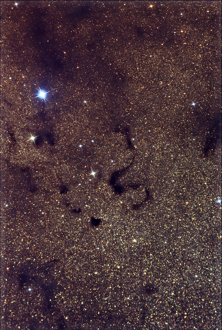 And that's the distinguishing feature of a dark nebula – it's only dark because it's surrounded by brighter parts of the sky, whether a great swathe of the Milky Way (stars and emission nebulae), or just a part of an emission nebula (the Horsehead Nebula is perhaps the most famous of this kind), or something in between.