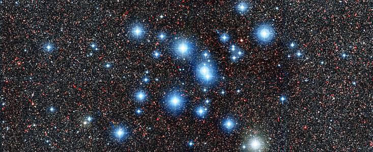 One of the most prominent open clusters in the sky, M7 lies roughly in the direction of the galactic center in the nearby astronomical constellation of Sagittarius. When you're looking towards M7 and the tail of Scorpius you're looking just south of the galactic plane in the direction of the dusty core of our galaxy. The ESO image reveals the shining jewels of the cluster embedded against the more distant starry background.