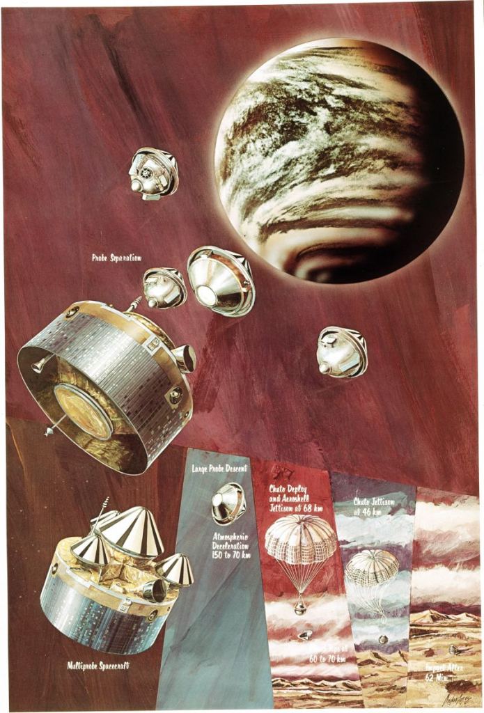 It's the Pioneer Venus Multiprobe (PVM) and the data it gathered that's at the heart of this study. The PVM was made up of a main spacecraft that carried four separate probes. One was large, and three were smaller. On December 9th, 1978, all four probes were released into the Venusian atmosphere at different locations, gathering data as they descended through the thick clouds.
