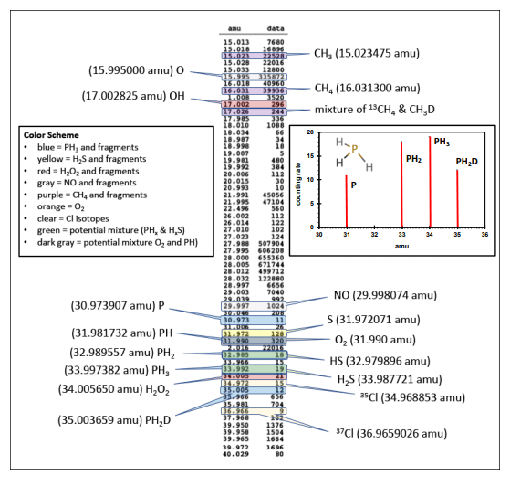 In short, there's some initial ambiguity in the readings, suggesting that what appears to be PH3could potentially be H2S, or hydrogen sulfide. But in the end, it's PH3and its sibling PH2that account for it, in the authors' analysis.