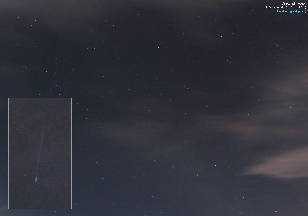 At approximately 20:00 BST (21:00 UT) on October 8th 2011 the shower started in earnest and many in the UK and Europe looked forward to an evening of meteor watching.