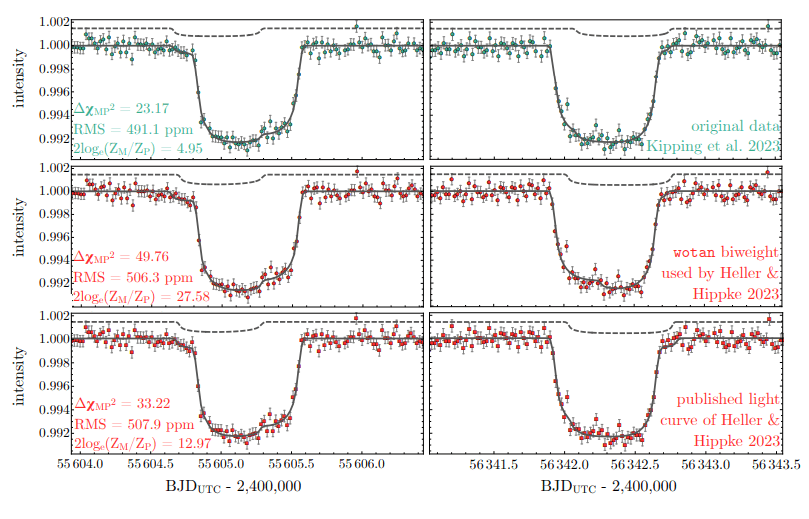 Something similar occurred with Kepler-1708 b-i, too. Kipping and Teachey write that Heller and Hippke used a fitting procedure incorrectly. But when Kipping and Teachey used the same data Heller and Hippke did but fit it correctly. Kipping told Universe Today that the fitting procedure is the main reason for their different results. "The primary reason is that their fitting algorithm simply missed the moon solution, which we demonstrated by refitting their own data and obtaining a significantly improved fit quality," Kipping wrote.