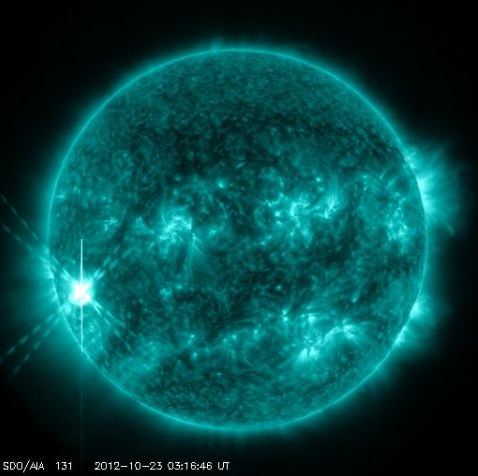 An image from the Solar Dynamics Observatory during the X-class flare event on Oct. 23, 2012 (UTC). Credit: NASA/SDO