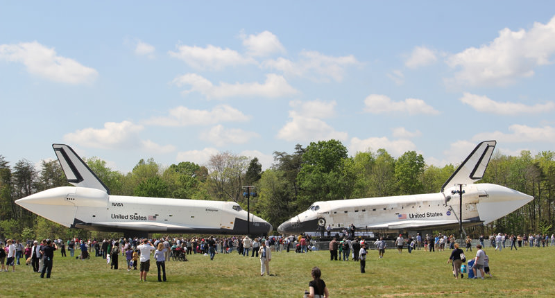 - sit nose to nose in a historic, once in a lifetime meet up at the Smithsonian's National Air & Space Museum Annex in Virginia on April 19, 2012 for the official transfer of ownership from NASA to the