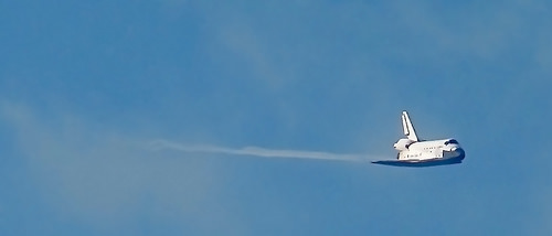 [caption id="attachment_63360" align="aligncenter" width="580" caption="Discovery on course for landing on April 20, 2010. Credit: Alan Walters (awaltersphoto.com) for Universe Today"]