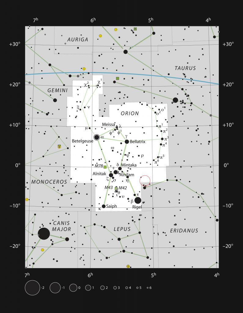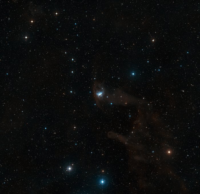 Its real name is NGC 1788. It's a reflection nebula, meaning the light of nearby stars is strong enough to light it up, but not strong enough to ionize the gas, like in an emission nebula. Even though the stars are young and bright, the Cosmic Bat is still hidden. It took the powerful Very Large Telescope (VLT) to capture this image.