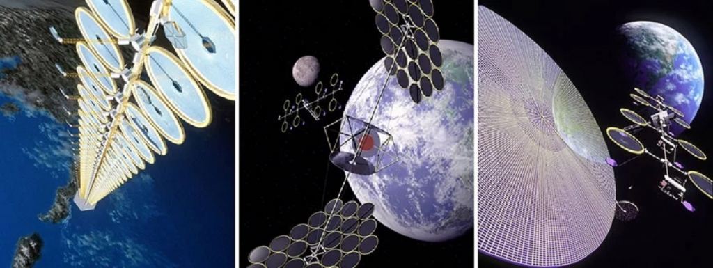 The design, inspired by the shape of a butterfly, features V-shaped solar panels with integrated antennas deployed in a helix configuration that measure more than a square kilometer (0.386 mi) in diameter. The solar cells are based on previous ESA-supported research, which showed how iron pyrite monograin-layer solar cells could be manufactured using lunar regolith. As the Astrom team indicated in their proposal, this combination of in-situ resource utilization (ISRU) and in-orbit assembly would overcome one of the main challenges of SBSP:
