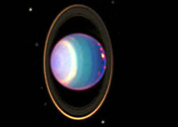 The rings around Uranus are bigger and more complex than Jupiter's rings, but not as substantial as Saturn's. They're much younger, perhaps only 600 million years old, and appear to have been caused by two moons crashing into each other, long ago.