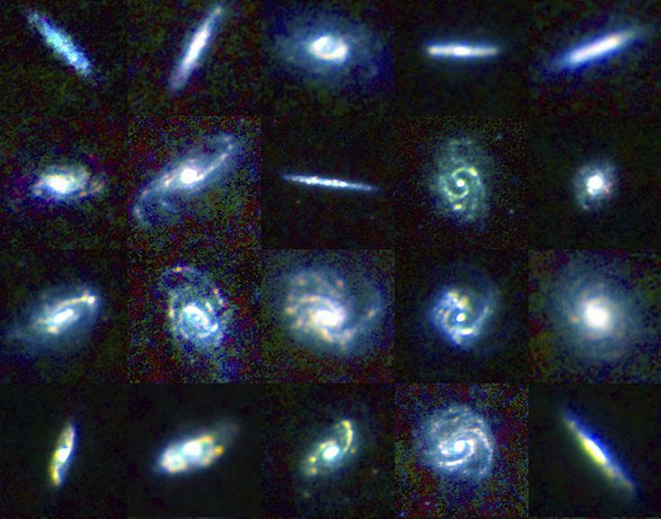 Spectral and Photometric Imaging Receiver (SPIRE) and Photodetecting Array Camera and Spectrometer (PACS). These instruments examined different frequencies of dust emission, which shows what the grains are made of. You can see a few of those galaxies in the image above.