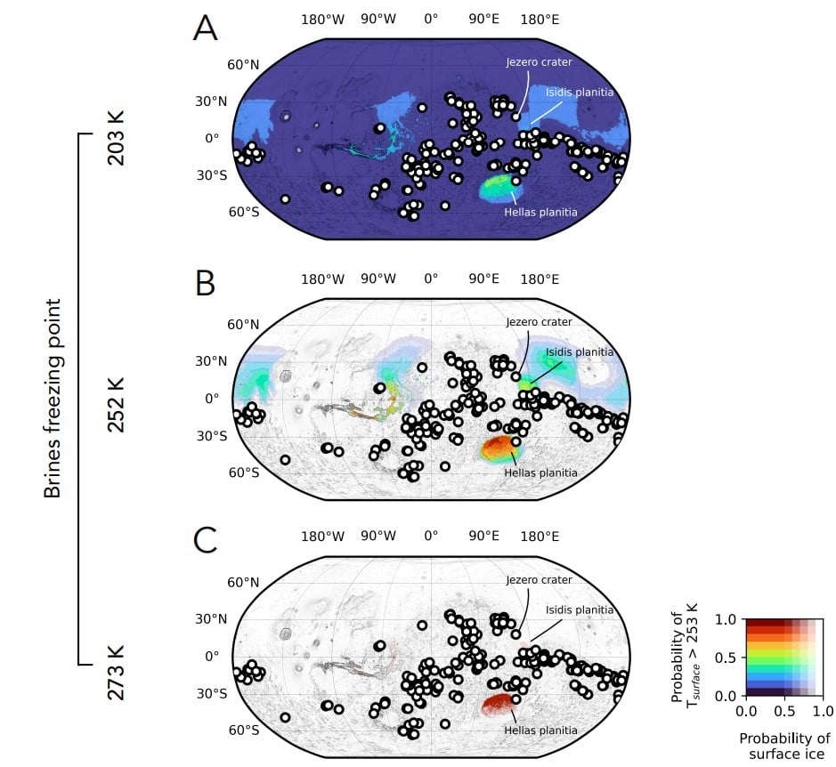 The researchers also identified places on the Martian surface where future missions have the best chances of finding evidence of the planet's ancient life. "Near-surface populations would have been the most productive ones, therefore maximizing the likelihood of biomarkers preserved in detectable quantities," the authors write in their paper. "The first few meters of the Martian crust are also the most easily accessible to exploration given the technology currently embarked on Martian rovers."