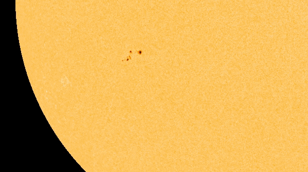 The latest sunspot region to traverse the face of the Sun has nearly doubled in size as it aims Earthward, as seen in the animation above from NASA's Solar Dynamics Observatory. (Click image to play the animation.)
