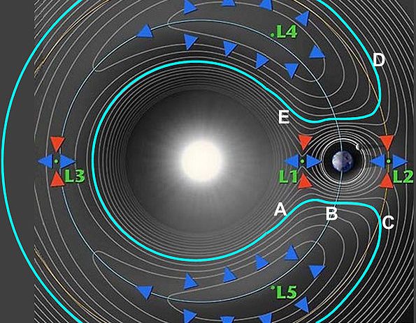 After that, the Earth will catch up with the slower asteroid in the bigger orbit, pulling it back into the small faster orbit and process begins again.